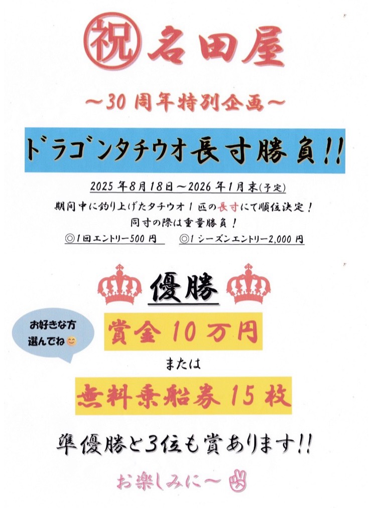 ●エントリーは乗船代お支払い時のみになります!(出船してからはエントリー、変更出来ません)